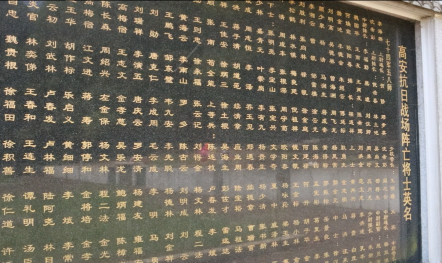 (图为高安抗日战场阵亡将士英名)